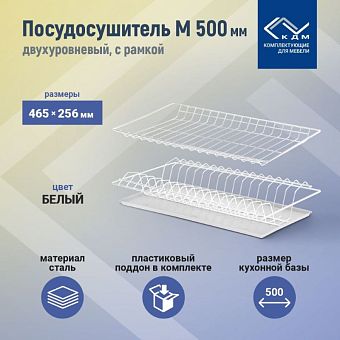 Посудосушитель двухуровневый 465х256мм, с рамкой (белый)
