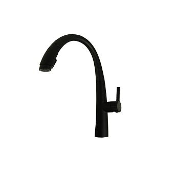 Смеситель д/кухни С-обр. гусак Magnus черный,с фиксацией на жестком изливе, нерж.сталь304, арт 91119