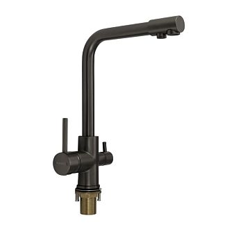 Смеситель д/кухни Г-обр. гусак Magnus с краном питьевой воды. из латуни, цвет - ГРАФИТ, арт.8247