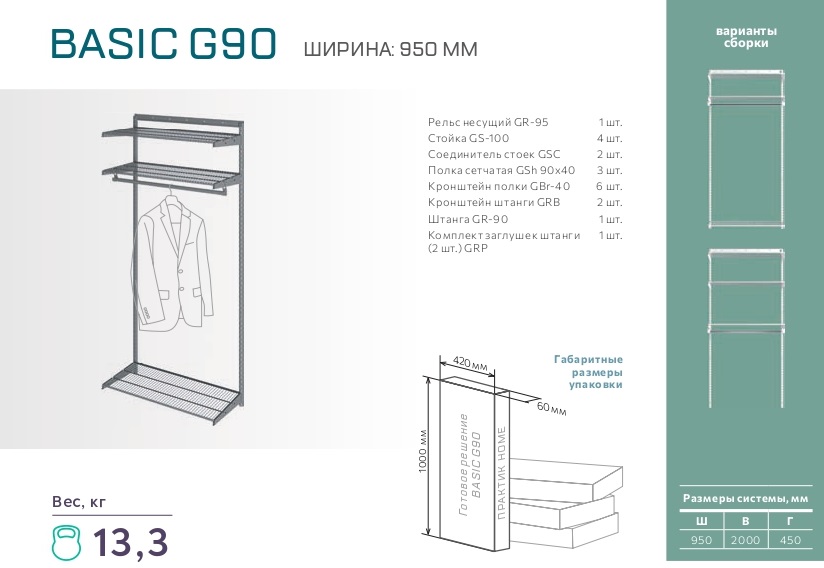 Полка сетчатая ПРАКТИК Home GSh 90х40 белая - 3 шт.