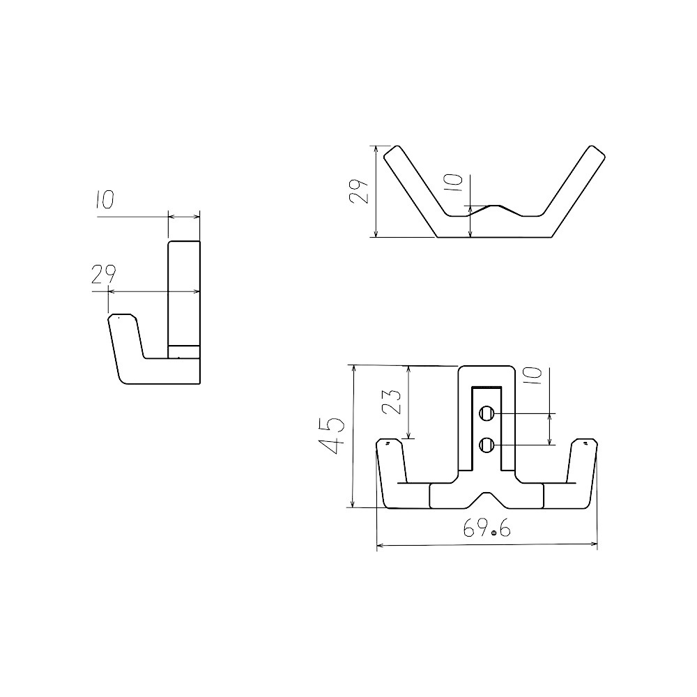 Крючок мебельный 2-x рожковый EVA ANGLE хром