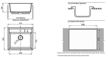 Мойка мрамор М-06 (EVA) 1 чаша 558*498 мм песочный (аналог КА-1048607)