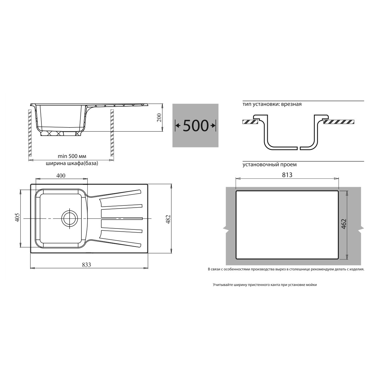 Общий размер мойки