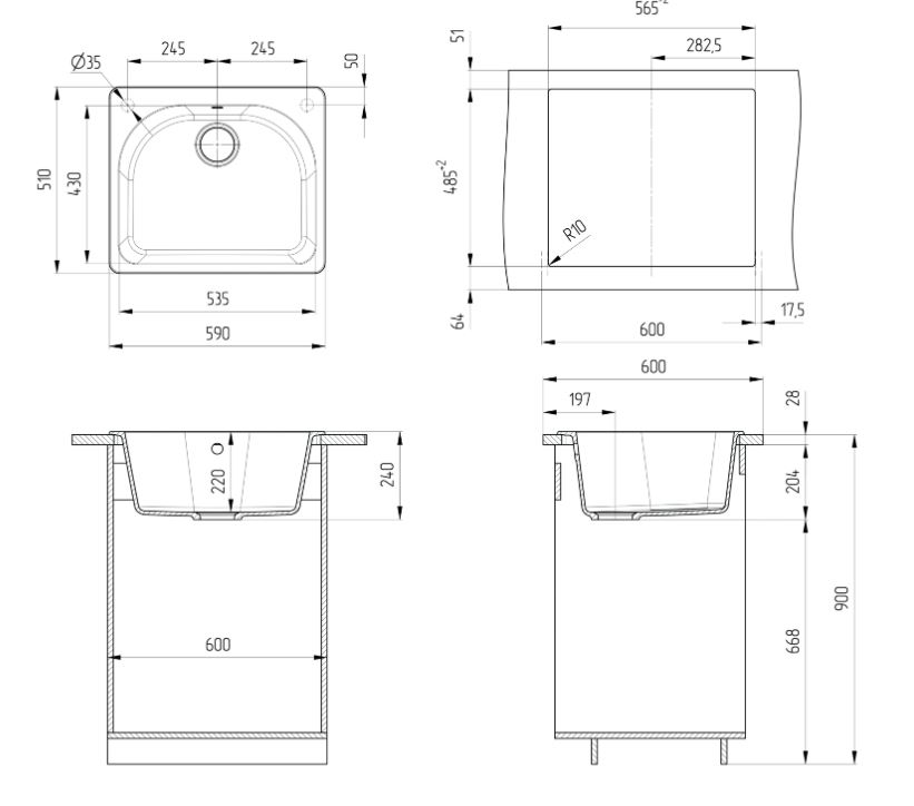 ULGRAN U-408 - односекционная реверсивная кухонная мойка с вместительной чашей. Данная мойка устанавливается в шкаф шириной от 60 см и подходит для малогабаритной квартиры. В комплектацию входит сливная арматура с гофротрубой, технический паспорт и гарантийный талон. Заводская гарантия составляет 4 года, а срок службы данной мойки, при соблюдении основных правил ухода за ней, составляет более 10 лет.