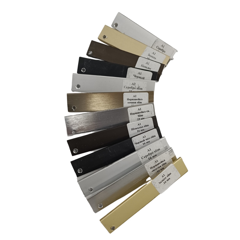 Комплект состоит из 13-и образцов алюминиевого профиля, который используется при производстве изделий фабрики «КЕДР-ФАСАДЫ». Предназначен для демонстрации вариантов кромления торцов фасадов.