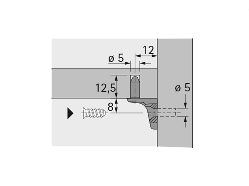 С диаметром отверстия 5 мм, он подходит для прямой резьбы и монтажа с использованием винтов с потайной головкой диаметром 6,3 мм. Дополнительно предусмотренное отверстие диаметром 3 мм позволяет устанавливать винты с потайной головкой диаметром 4 мм.