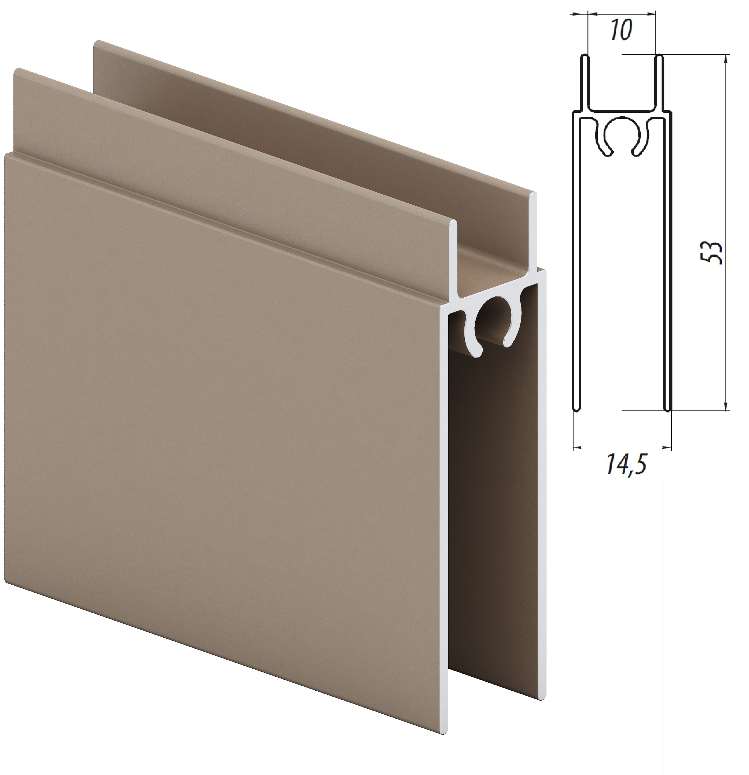 Горизонтальный нижний профиль монтируется на торец нижнего среза двери раздвижной системы дверей для шкафа-купе. Эта деталь также придает дверному полотну эстетичный вид и служит в качестве декоративной планки.